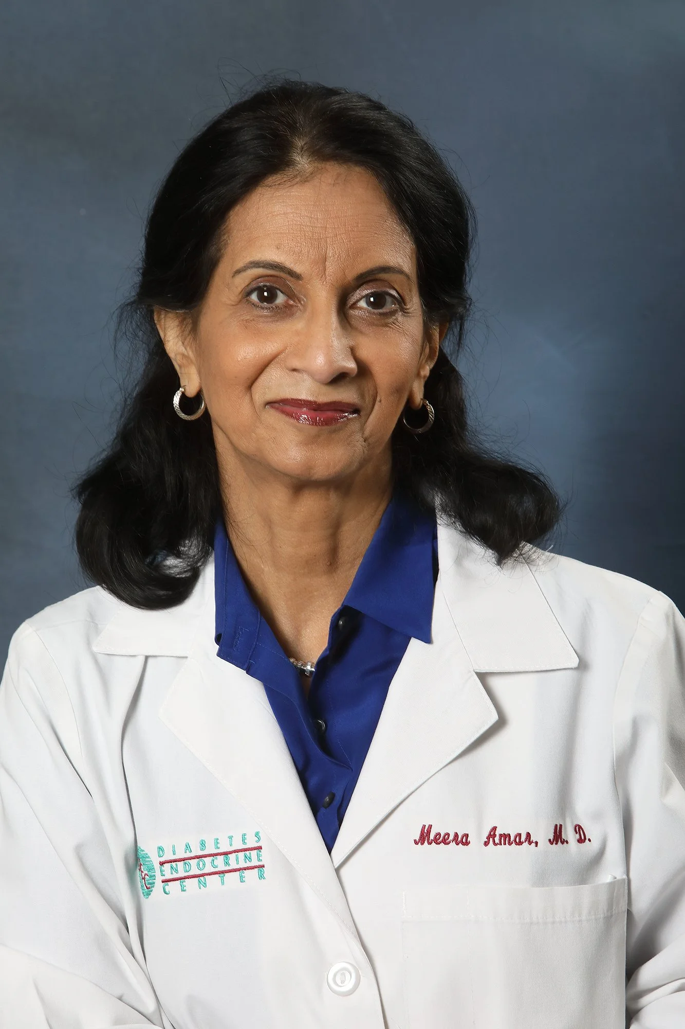 Meera Amar, M.D. is board certified by both The American Board of Internal Medicine and The American Board of Endocrinology. After finishing medical school in India, Dr. Meera Amar completed her internal medicine residency in New York at Beekman Infirmary Hospital. She then pursued a fellowship in endocrinology at the V.A. New York Mount Sinai Program. Dr. Amar completed her fellowship at Texas A&M Health Sciences Center in Central Texas.